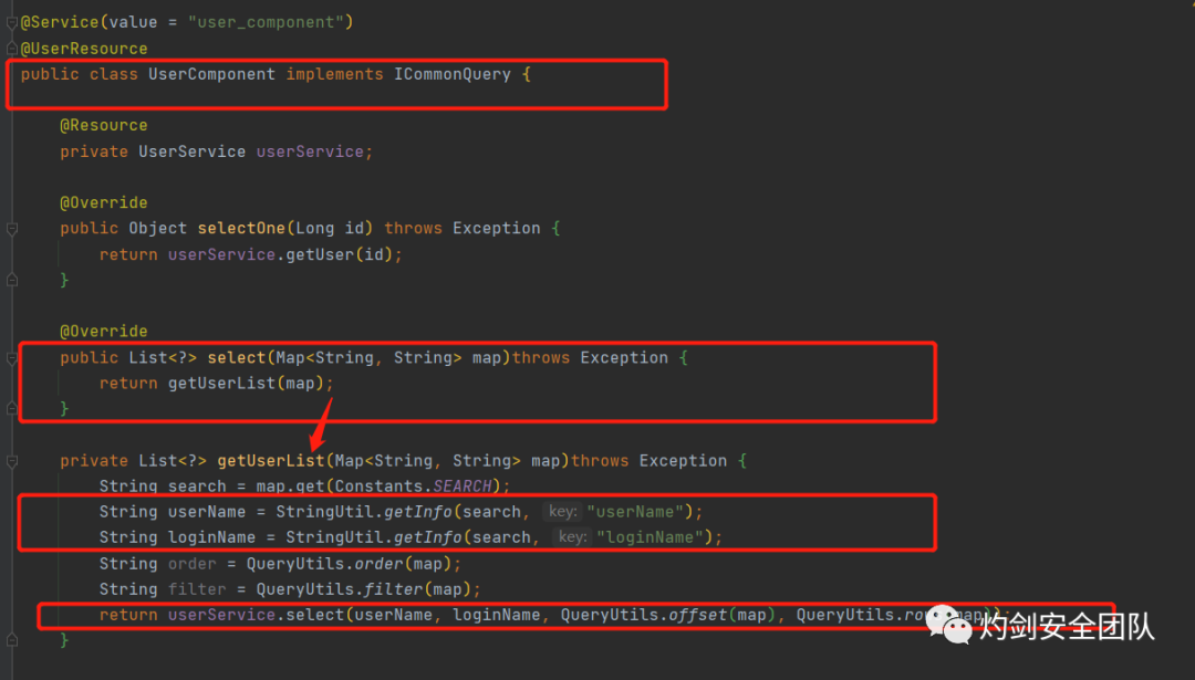 这里看到userName,loginName是从search字段中获取的,并且参数可控,接下来继续找Controller层的调用。