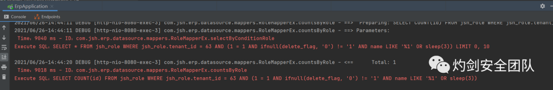 当然role/list这个方法里也存在SQL注入漏洞:验证POC: