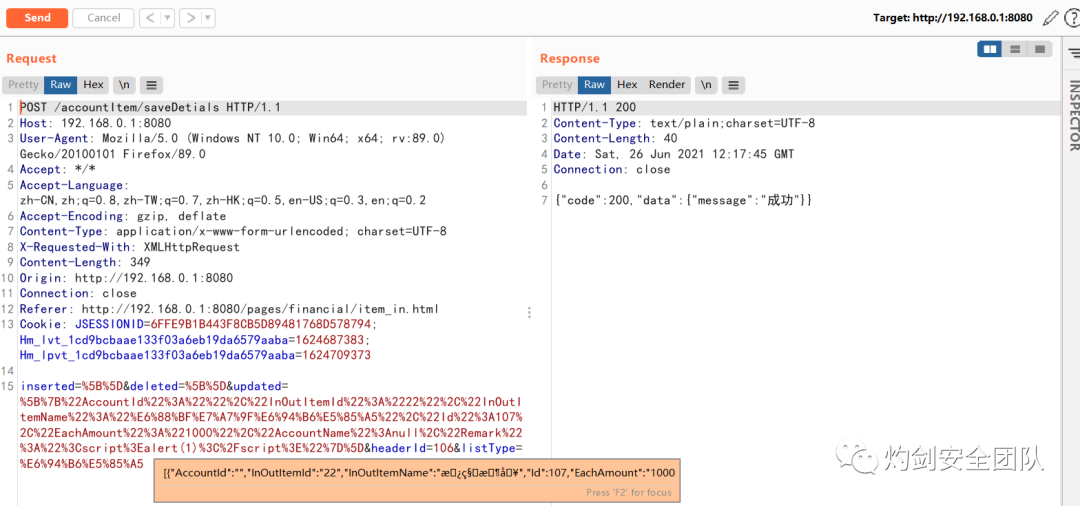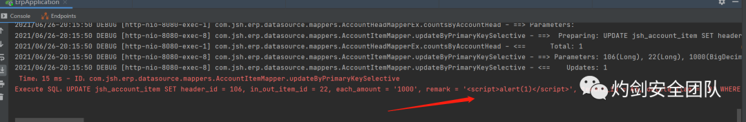 看一下控制台的SQL语句,无任何防护措施直接存入数据库。