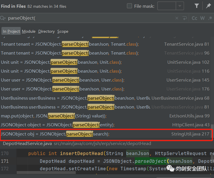 查看一个Util接口文件,这里直接将search的内容传入parseObject方法中进行解析。