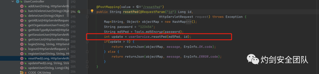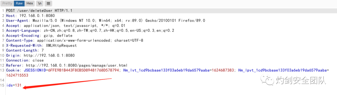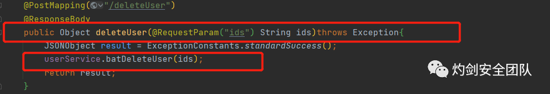 代码这里能看到,传入用户ids,就可以删除该用户信息