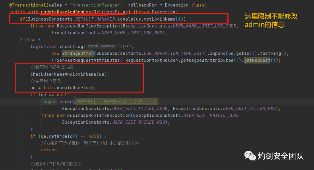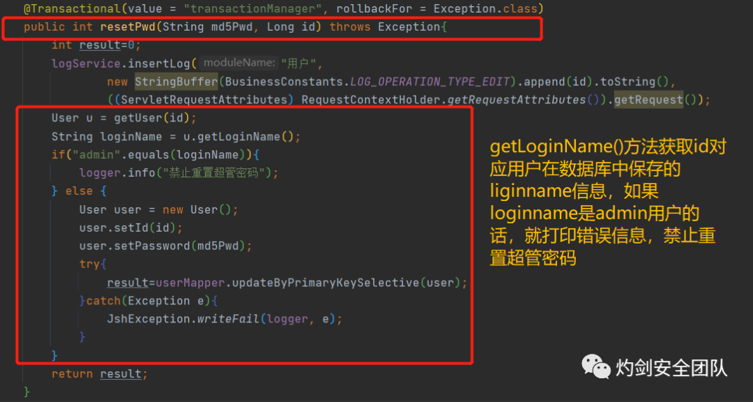 这里只禁止了重置admin超级管理员密码,但没有对当前用户身份做判断