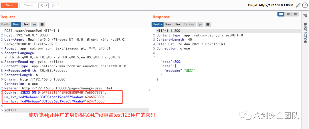可以看到,这里成功使用jsh用户重置了test123用户的密码