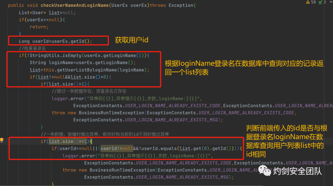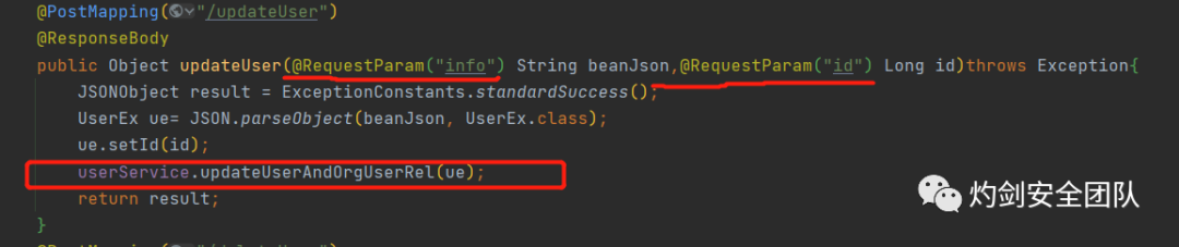 方法将登录名拼接到sql语句中来获取用户列表,再从列表中取出id与前端传入的id作比较,相同的话就可以更新数据。(这里并没有对当前用户身份做判断)