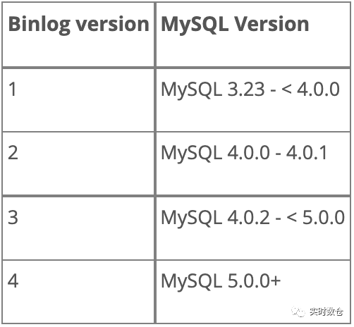 binlog格式目前有4个不同版本