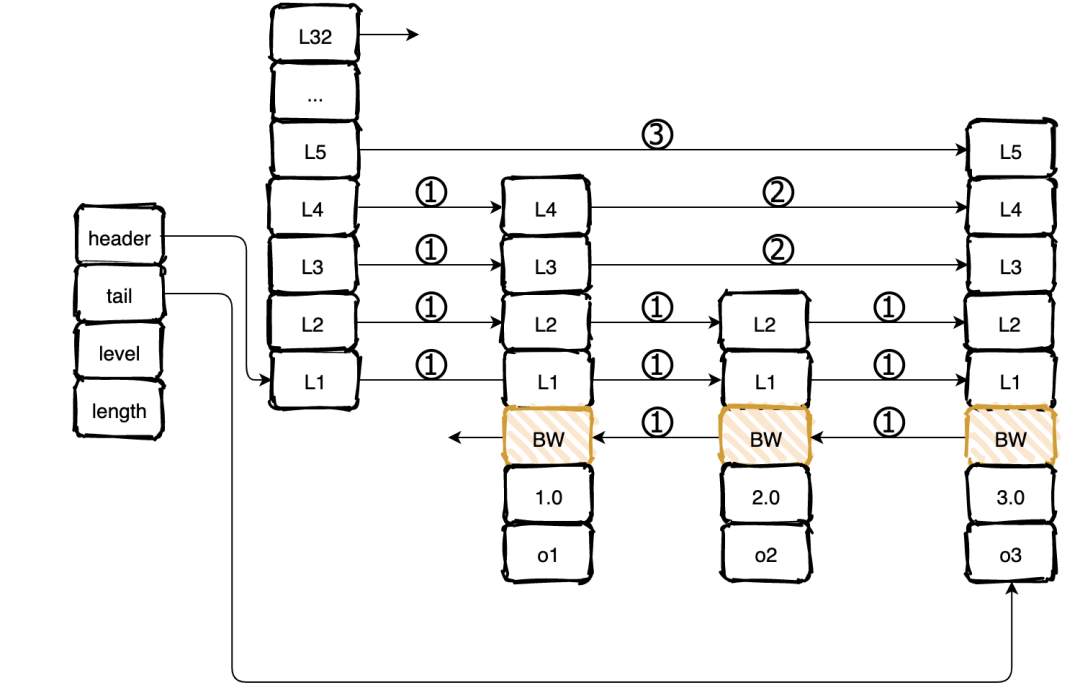 Rehash:每个字典有两个Hash表,一个平时使用,一个Rehash的时候使用。Rehash是渐进式的,分别是由以下触发:Hash冲突:采用单向链表的方式解决Hash冲突,新的冲突元素会被放到链表的表头。有序集合可以被用于一些排序场景,底层采用跳跃表实现。struct zskiplistNode {