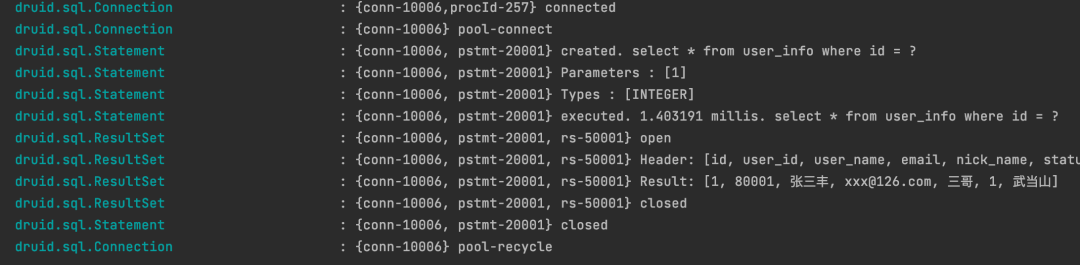 spring.datasource.druid.connection-properties=druid.stat.mergeSql=true;druid.stat.slowSqlMillis=2;druid.stat.logSlowSql=true;druid.log.conn=true;druid.log.stmt=true;druid.log.rs=true;druid.log.stmt.executableSql=true