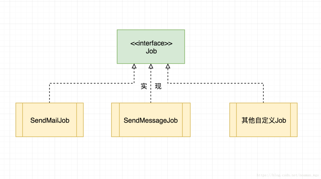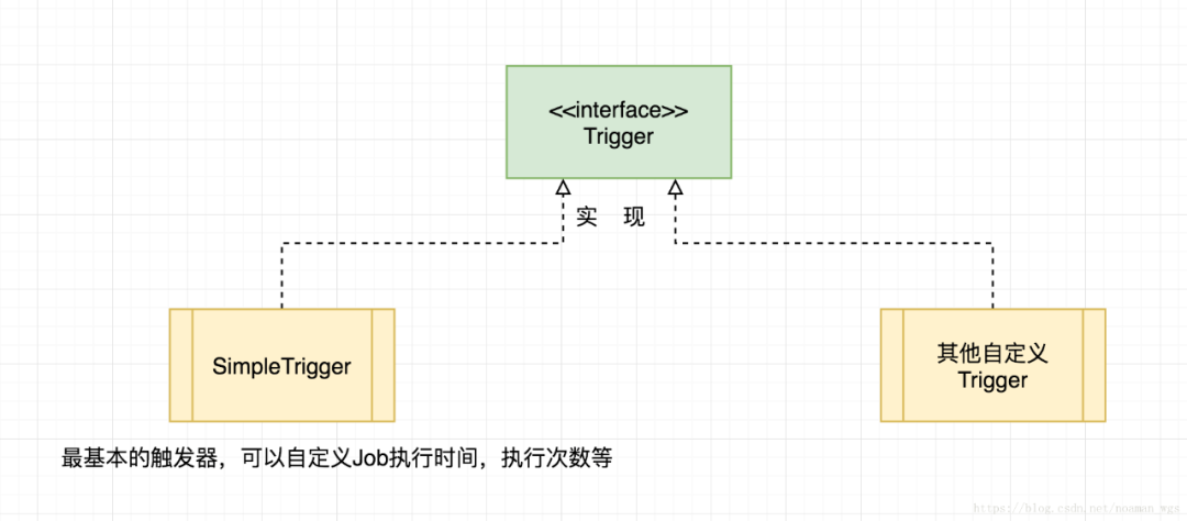 //定义一个作业类,实现用户的业务逻辑public class HelloJob implements Job {......实现业务逻辑}//根据作业类得到JobDetailJobDetail jobDetail = JobBuilder.newJob(HelloJob.class)//定义一个触发器,按照规定的时间调度作业Trigger trigger = TriggerBuilder.newTrigger("每隔1分钟执行一次")//根据作业类和触发器创建调度器Scheduler scheduler = scheduler.scheduleJob(jobDetail,trigger);//启动调度器,开始执行任务scheduler .start()