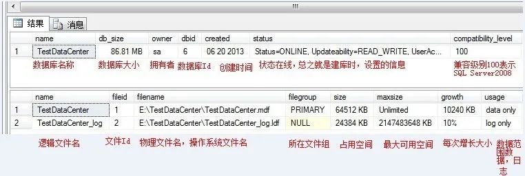 sp_helpdb TestDataCenter --已存在的已知数据库