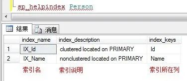 3、sp_helpindex:查看有关表或视图上的索引的信息