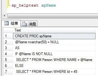 CREATE PROC spName@Name nvarchar(50) = NULLASIF @Name IS NOT NULLSELECT * FROM Person WHERE NAME = @Name --记得自己建表ELSESELECT * FROM Person WHERE Id = 45