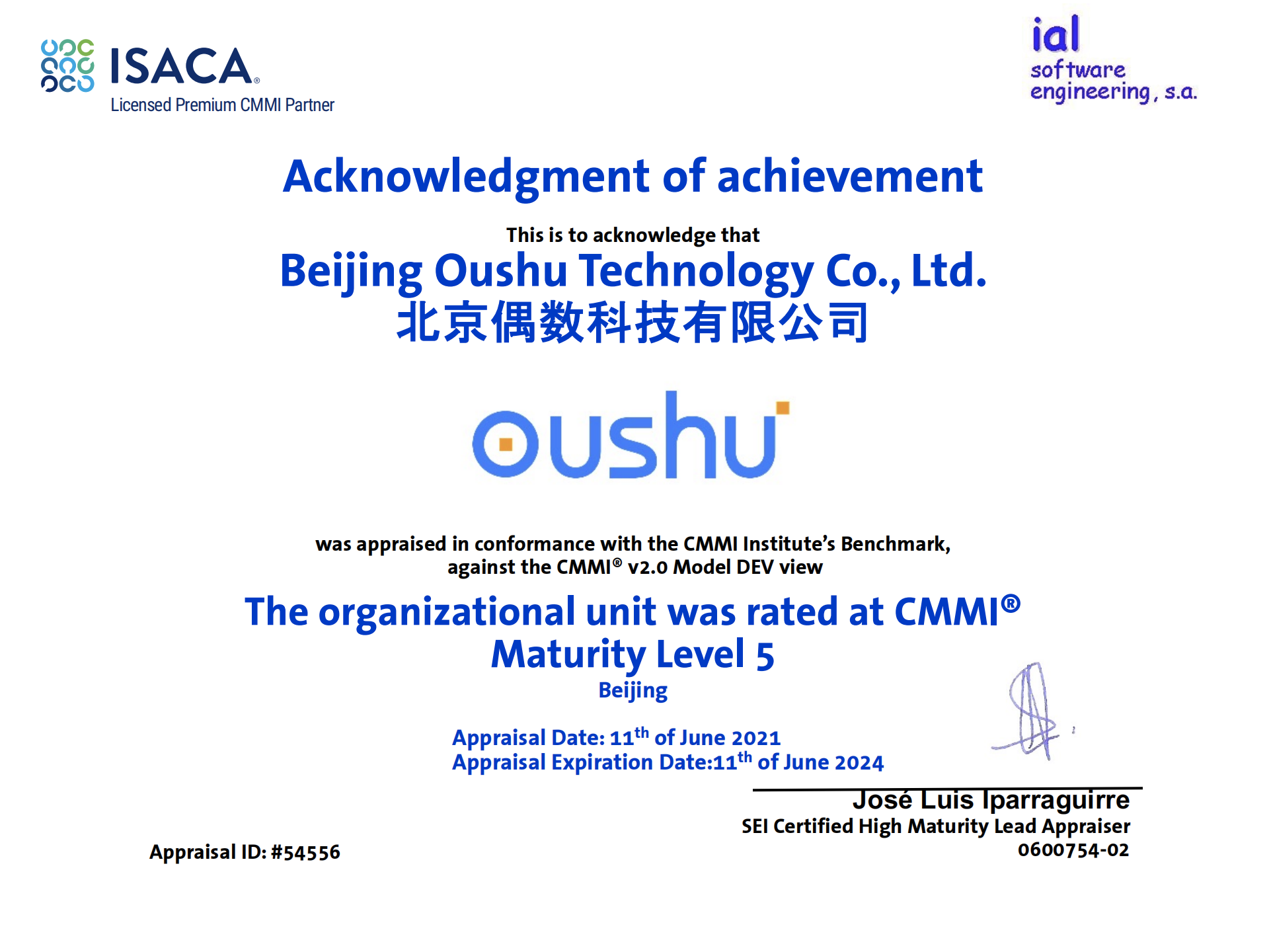 日,偶数科技顺利通过了由国际评估专家主持的 CMMI5 级正式评估,并获得了CMMI5 级软件能力高成熟度认证。