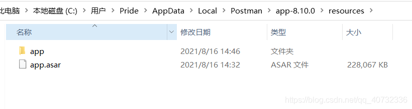 示例 C:\Users\Pride\AppData`Local\Postman\app-8.10.0\resources`
