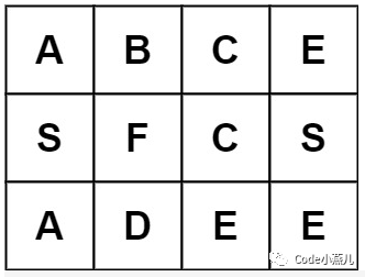 此题为LeetCode算法第79题,给定一个字符矩阵以及一个单词,要求判断单词是否出现在字符矩阵中,示意图如下