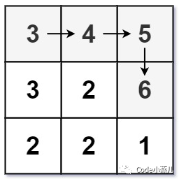 此题为LeetCode算法第329题,给定矩阵,求最长递增路径的长度,示意图如下: