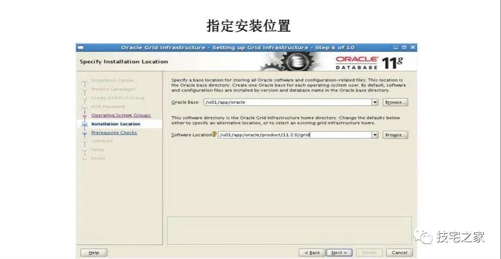 默认值为/u01/app/oracle/product/11.2.0/grid。单击“Next(下一步)”按钮继续安装。