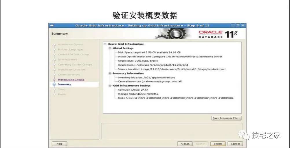 此时将显示“Summary(概要)”页。复查呈现的信息,这些信息与在之前页面中提供的安装答案相关。将会出现将交互安装问题及答案保存至响应文件的选项。响应文件可用于在将来的安装中执行无提示安装,其安装方式与正在执行的此安装相同。响应文件是一个文本文件,可以使用文本编辑工具进行编辑,以便针对不同的安装进行修改。单击“Finish(完成)”按钮继续安装。