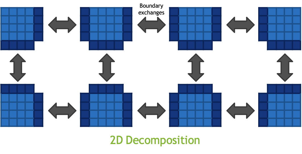 第一类通信方式是点对点(point-to-point)通信,这是高性能计算(HPC)中最常使用的模式,通常是与其最近的邻居进行通信,每个实例都是单发送方,单接收方,如图6所示。