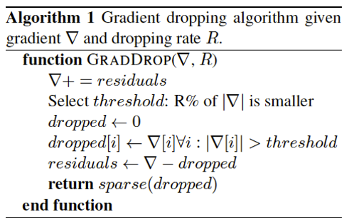 15.Aji, Alham Fikri, and Kenneth Heafield. "Sparse communication for distributed gradient descent." arXiv preprint arXiv:1704.05021 (2017).