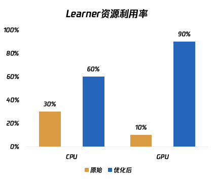 五是自定义实现Replay Buffer,进一步地满足数据预取功能和算法上的其他需求。通过上述处理后,Avatar上的IO和计算可以实现更多的重叠,如图24所示,训练速度变得更快。同时,Leaner(GPU)的资源利用率得到了极大的上升,能够达到90%以上,如图25所示。