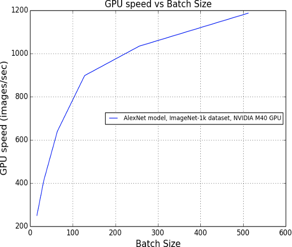 图26 单个GPUAlexNet训练速度与batch size的关系
