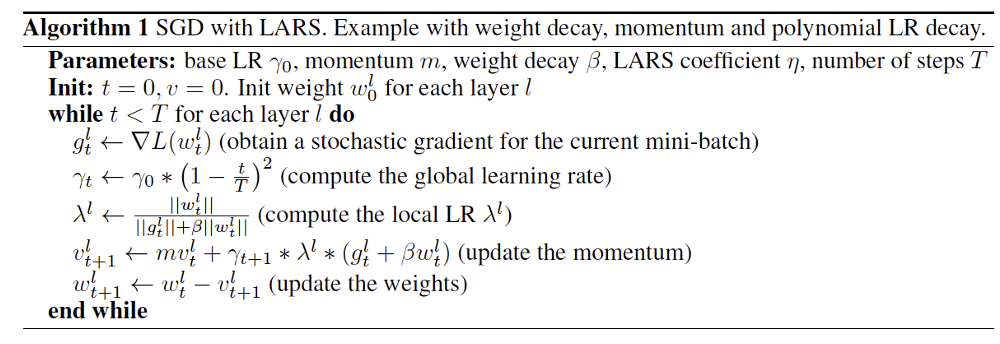 基于上述问题,就有了LARS优化器,如图32所示,其主要就是利用网络中每一层的权重和相应梯度的l2 Norm的比例来对学习率η做逐层的修正,得到layer-wise learning rate,即η=