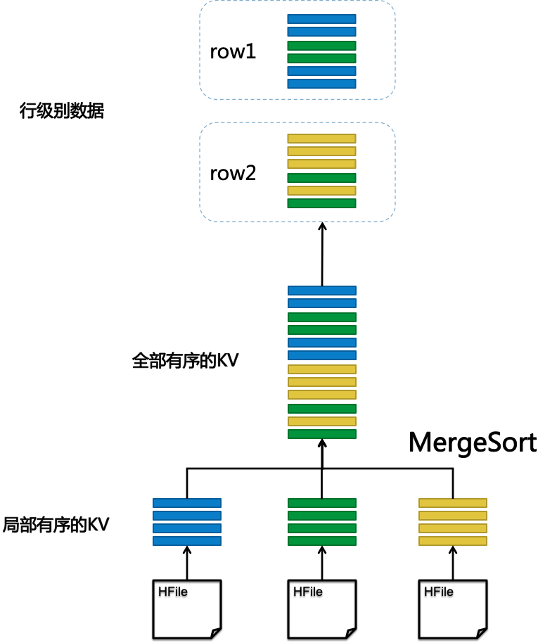 即从不同的HFile中进行数据读取,在内存中进行一个MergeSort,拼接成一行数据向上返回。