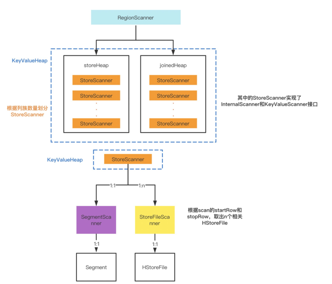 HBase的读取任务开始之前需要构建初始的Scanner体系,涉及RegionScanner与StoreScanner的对象初始化,我们详细来看: