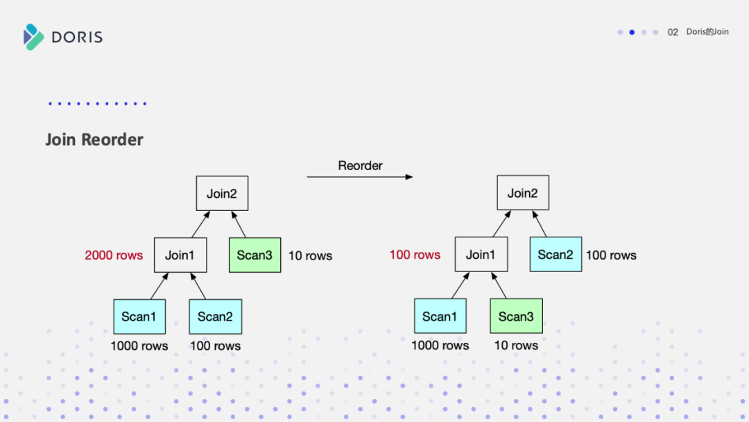 最后就是 Doris Join 的一个重要机制—— Join Reorder ,在进行 Join 调优的时候会常常用到它。