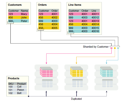 sharding 软件需要照顾分区,数据平衡, 访问协调,数据完整性