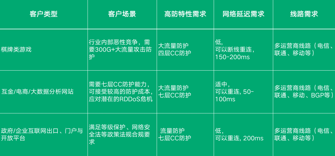 高防 IP 的典型应用场景,包括传统棋牌类游戏客户,这类业务通常需要面对大流量攻击防护,以及四层 CC 攻击防护。