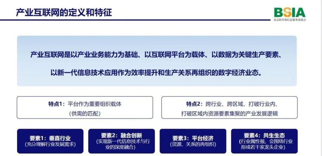 垂直行业、融合创新、平台经济、共生生态是产业互联网形成的四大要素。