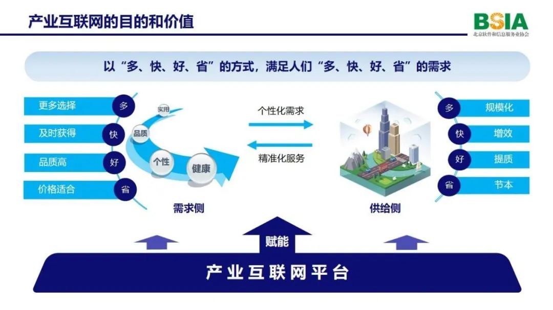 产业互联网的价值何在?刁志中指出,数字经济时代,产业互联网赋能供给侧,通过创新挖掘和提升供给侧的低效率洼地,带来供给侧的高质量发展,实现以往生产要素驱动向创新驱动的转变,以精准化服务满足消费者“多、快、好、省”的个性化需求。