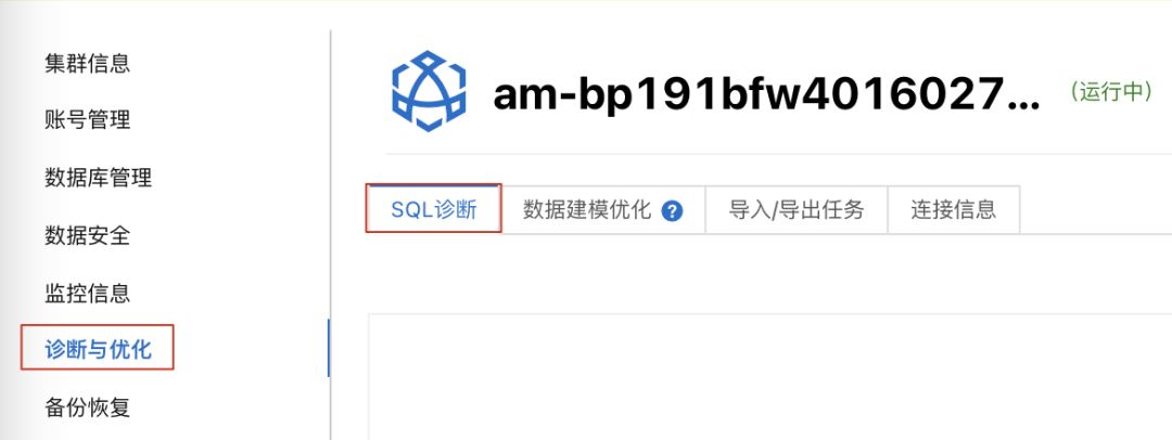 用户可以通过「集群控制台」-「诊断与优化」 - 「SQL诊断」进入SQL智能诊断功能。