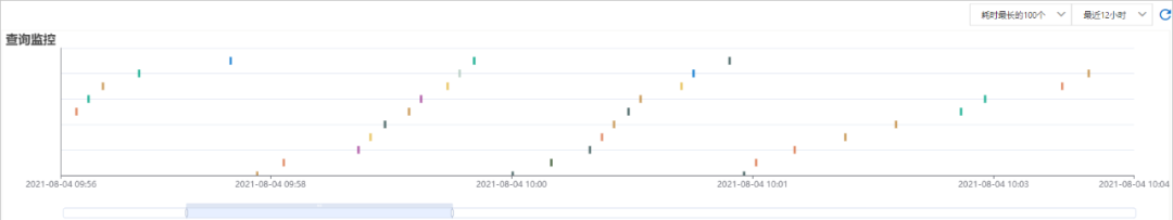 通过甘特图,用户可以非常直观的看到当前时间范围内执行耗时较长的查询,并且可以直观的看到哪些查询是在并行的执行以及并行执行的时间段,这可以帮助用户判断出哪些查询是受到了某条Bad SQL的影响。色块的密集度则可以用来直观的判断ADB实例压力较大的时段是否和某些查询的并发度较高相关。