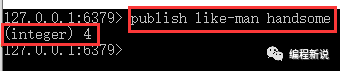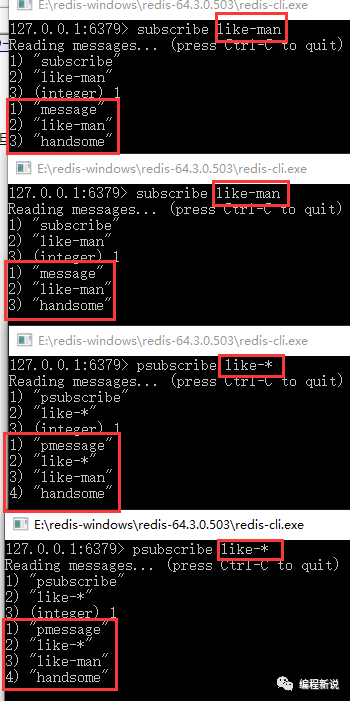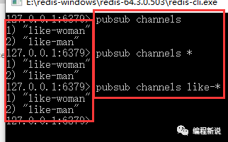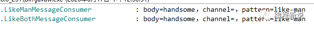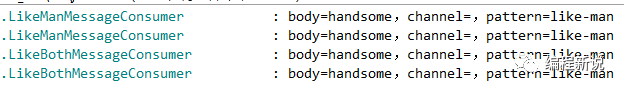 有四个订阅者接收到该消息,分别是两个订阅like-man的和两个订阅like-*的。