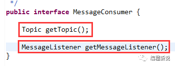 所以,我们自己定义一个接口,用于把它俩封装起来,接口名为MessageConsumer,即消息消费者。