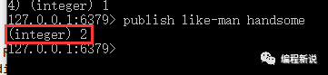 我们向like-man发送一个消息,提示有两个订阅者收到了该消息。