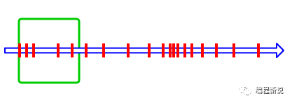 我们抽象出一个时间窗口,窗口的宽度就是1个小时的时间,然后把窗口放在时间轴的左侧起始处,使窗口的左边缘与时间轴上的第一个点对齐。