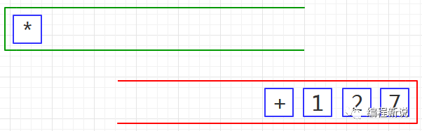第六步、读取到乘号,由于绿栈栈顶是加号,优先级低,所以压入绿栈,如图20: