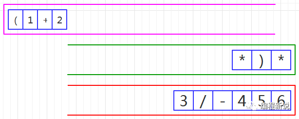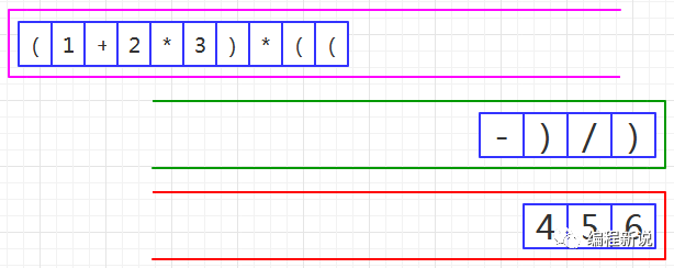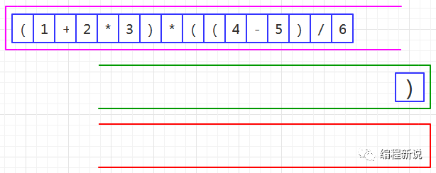 第二步、读取到右括号,压入绿栈,如图35: