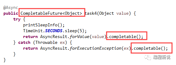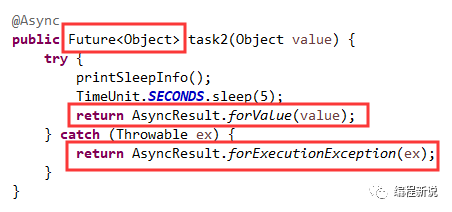 而我们在写@Async方法代码时return的是一个类似类型占位符的类,它的一个作用就是保证编译通过。