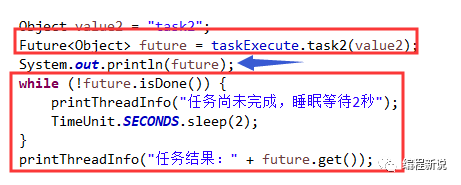 然后就像普通方法调用一样调用它,接着通过while循环等待异步任务完成后,输出返回结果。