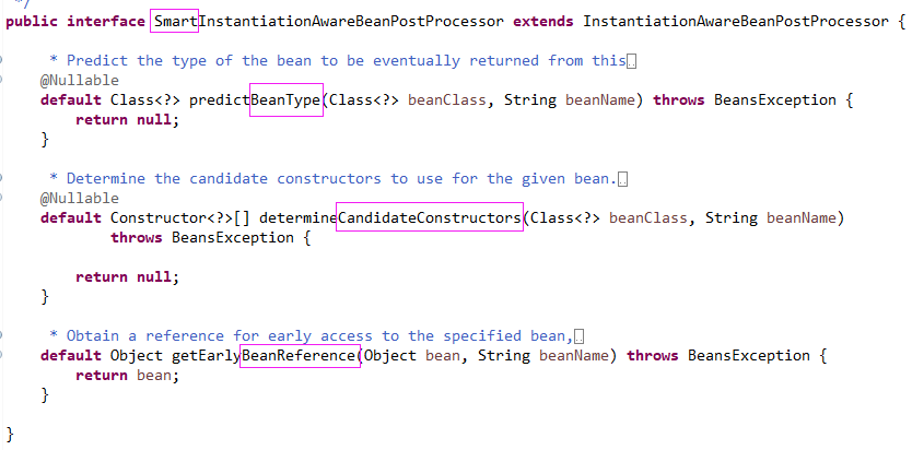 第二个方法,用来确定候选的构造方法,给我们一个定制构造方法的机会,方法的参数是原始的bean类型。