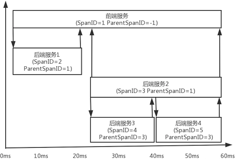 以下通过时序的角度来看下SpanID和ParentSpanID在调用链中携带的信息和含义: