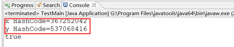 package com.ms.base;public class TestMain {public static void main(String[] args) {Test x = new Test("x");Test y = new Test("x");System.out.println("x HashCode="+x.hashCode());System.out.println("y HashCode="+y.hashCode());System.out.println(x.equals(y) == true);/*String name1 = new String("张三");String name2 = new String("张三");System.out.println(name1.equals(name2));System.err.println(name1.hashCode());System.err.println(name2.hashCode());*/}}