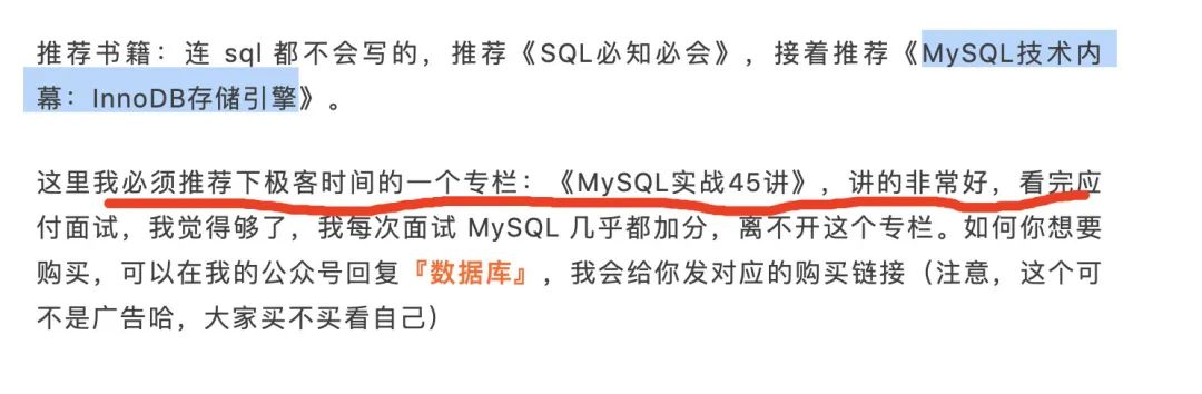 我相信应该有不少读者看过这个专栏,有一部分是通过我之前介绍购买的,有一部分是通过其他公众号推荐购买的,但无论你是从哪购买的,如果你想应付面试,把这个专栏 + 《MySQL技术内幕:InnoDB存储引擎》这本书刷了,想不稳都难。