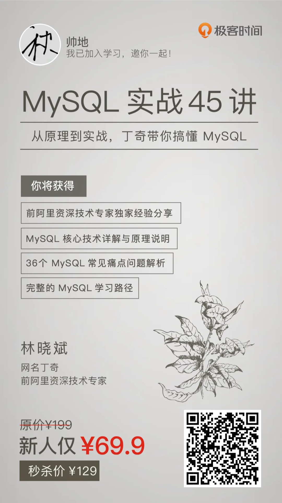 目前这个专栏正在搞活动,处于优惠期,新人购买只需要 69.9 元,这个专栏帅地是真心推荐的,新人价格也不贵,如果你想购买,可以通过帅地的的海报购买,顺便让我挣点零花钱