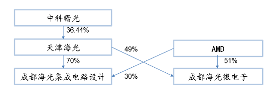 成都海光微电子由AMD以51%持股比例控股,海光持股49%,解决AMD的Zen架构授权,主营业务为芯片生产;