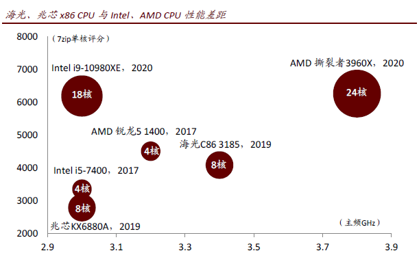 海光处理器主要面向商用服务器市场, 2020年公司最新推出的C86 3185处理器拥有8个处理器核心,单核性能与2 017年AMD推出的中端处理器锐龙 5-1400 接近。根据中科曙光年报披露,其向海光采购的CPU金额在2019年达到2.4亿元。